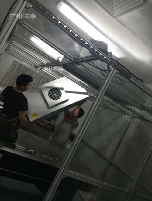 4、凈化工作站相對超凈工作臺,內部可用有效空間大;相對傳統無塵室,成本低、施工快、且對樓層高度低不限。技術人員正在放置千級潔凈棚FFU千級潔凈棚|1000級潔凈棚材料: