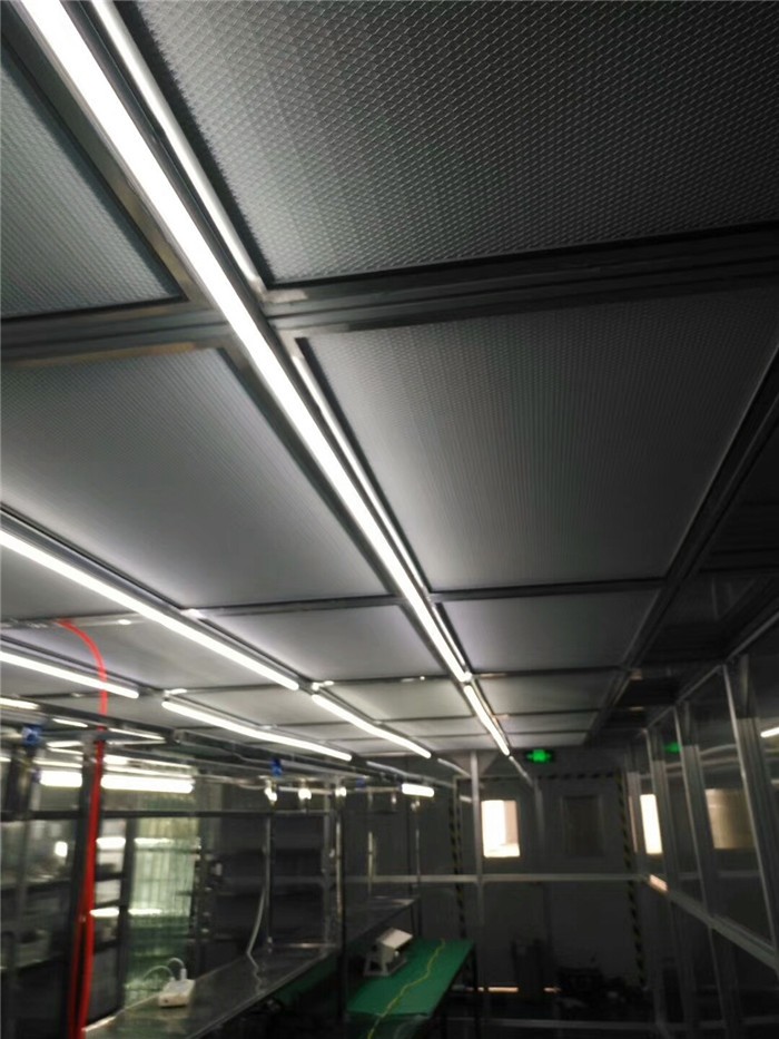 精益管表層為覆塑層,不易損傷零部件表面。潔凈棚內結構細節潔凈組裝流水線生產潔凈棚|凈化風淋流水線介紹: