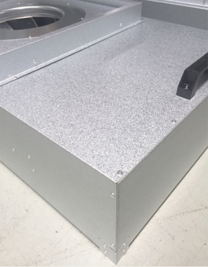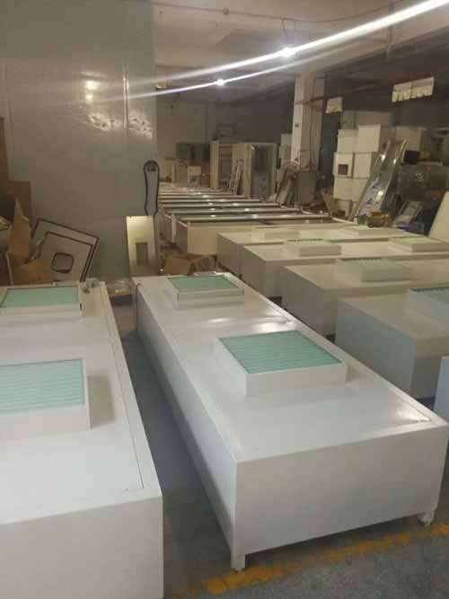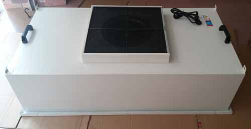 3、接著是風機機組與HEPA的安裝,把風機機組緊貼著hepa放好,安裝要謹慎小心,以防損壞HEPA。安裝好后,必須檢查他們的結合是否均勻,緊密。