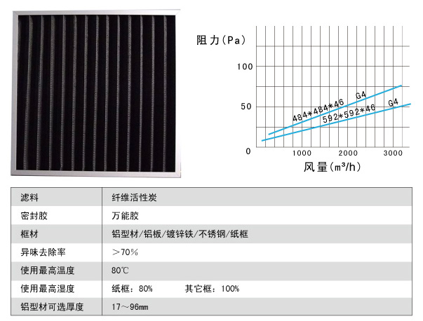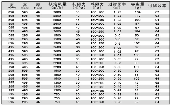 用戶選購指南-板式初效活性炭過濾器技術參數