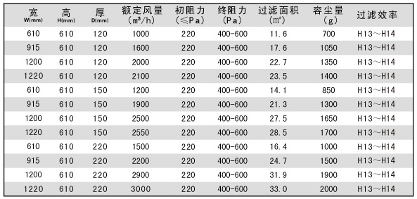過濾效率:99.97%-99.999%(H13、H14) MPPS