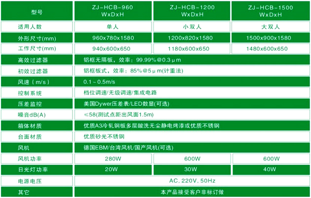 梓凈水平流超凈工作臺技術參數